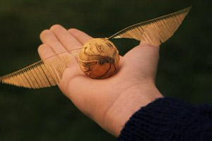 contrario, al pasarlos por los aros se ganan 10 puntos, con ella juegan los Cazadores. Las Bludgers son bolas que atacan a los equipos. Son pequeñas pero pesadas y vuelan con fuerza y son receptadas por los Bateadores, quienes utilizan bates pequeños para evitar que golpeen a algun jugado de su equipo. Y la Snitch Dorada es una pequeña bola dorada y alada muy rápida y difícil de atrapar, la cuál debe ser atrapada por los Buscadores, al atraparla se ganan 150 puntos y el partido se termina.